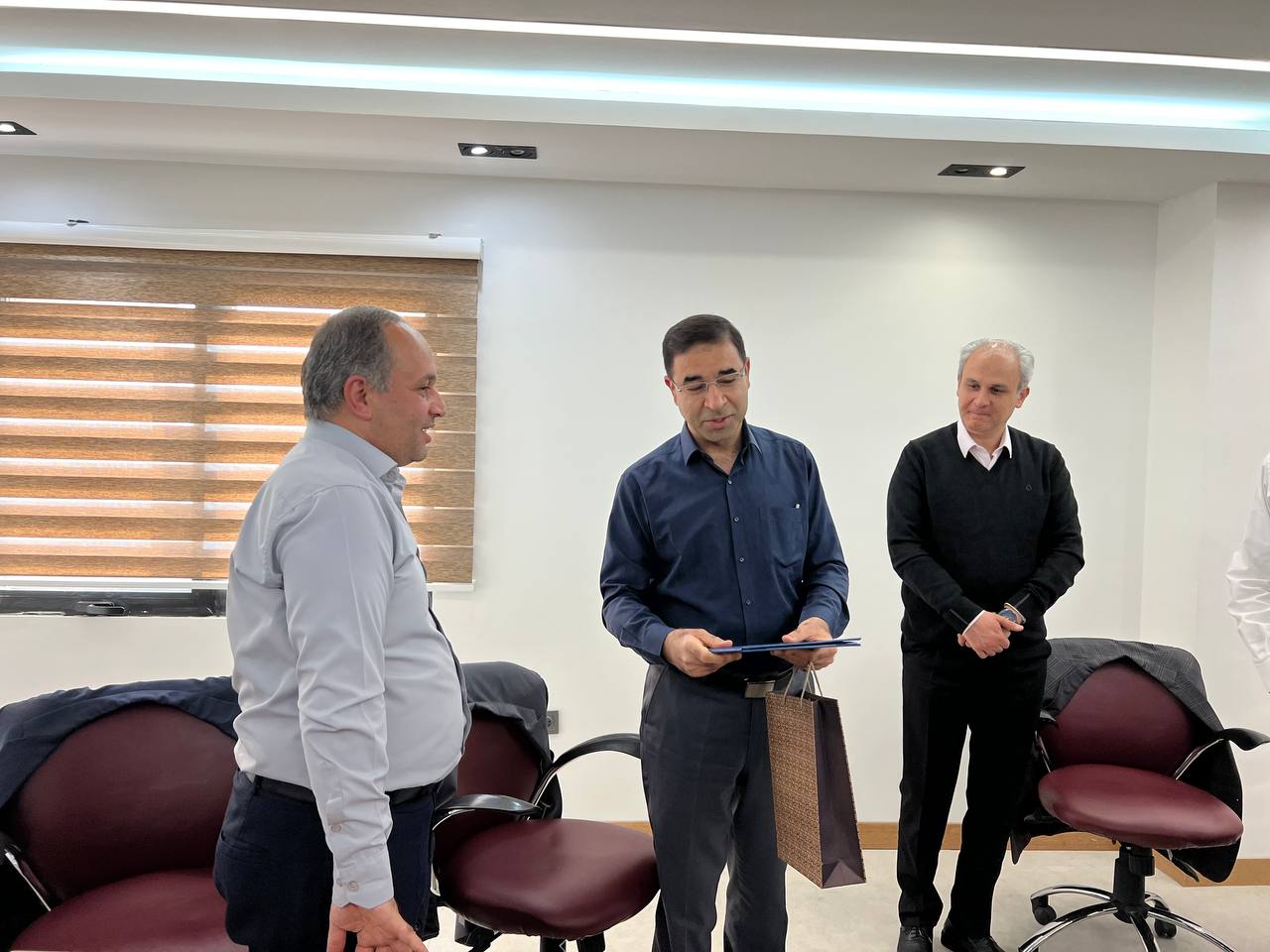 مراسم تجلیل از زحمات دو تن از اعضای هیات مدیره شرکت پارس فولاد مبین ØŒ با حضور جمعی از اعضای هیئت مدیره،مدیران این شرکت برگزار گردید. در این مراسم جناب آقای مهندس درباری ØŒ مدیر عامل این شرکت، ضمن تجلیل Ùˆ تشکر از زحمات آقایان دکتر فرهمند Ùˆ آقای طالبی، حضور ایشان را منشا خیر Ùˆ برکات عنوان نمودند. 20آذر1402